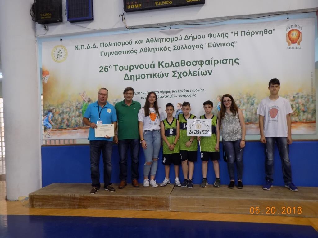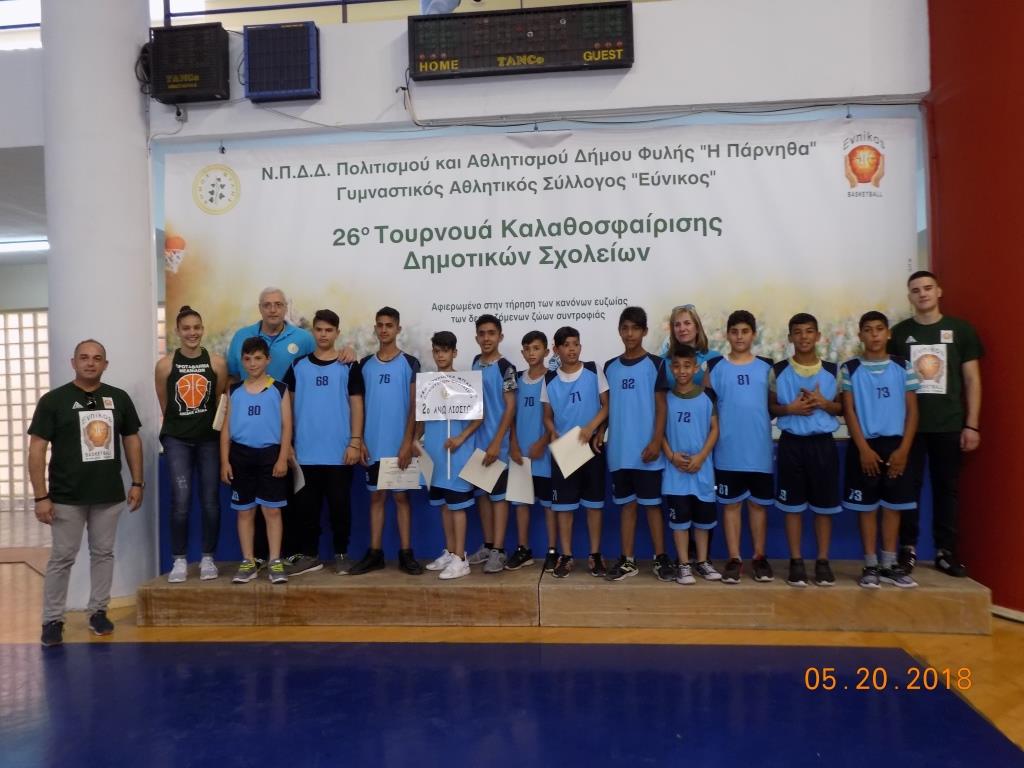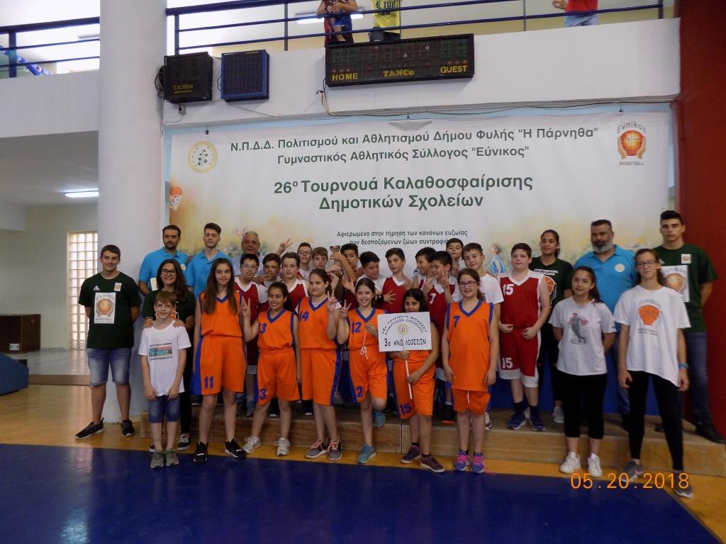 ΔΕΛΤΙΟ ΤΥΠΟΥ – Με μεγάλη επιτυχία και σε πανηγυρικό κλίμα ολοκληρώθηκε στο Κλειστό Δημοτικό Γυμναστήριο Ζωφριάς το 26ο Τουρνουά Καλαθοσφαίρισης δημοτικών σχολείων που οργάνωσαν το Ν.Π.Δ.Δ. Πολιτισμού και Αθλητισμού «Η ΠΑΡΝΗΘΑ» και ο Γυμναστικός Αθλητικός Σύλλογος «ΕΥΝΙΚΟΣ».