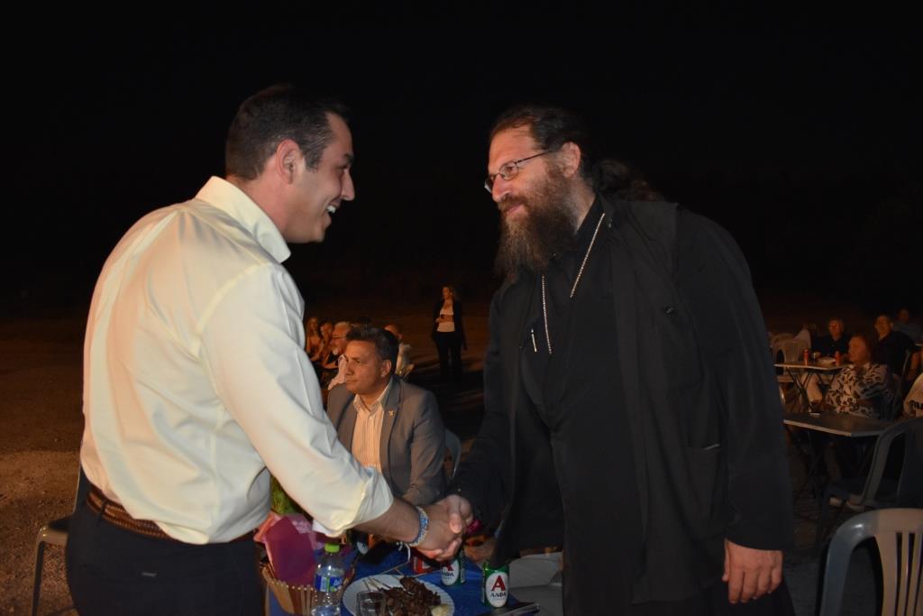 Ο πατέρας Μηνάς άνοιξε την εκδήλωση καλωσορίζοντας τον κόσμο και ευχόμενος καλή διασκέδαση. “Περάσαμε δυο χρόνια αποξένωσης με τον covid και τώρα πρέπει να εκμεταλλευτούμε το καλοκαίρι για να διασκεδάσουμε” παρότρυνε τον κόσμο και ανακοίνωσε πως την 1η Σεπτεμβρίου ο Ι.Ν. θα φιλοξενήσει για πέντε ημέρες Τίμιο Ξύλο που θα έρθει για προσκυνηματικούς λόγους από το Άγιο Όρος και τη Μονή Κουτλουμουσίου.