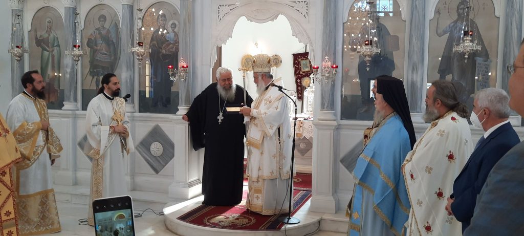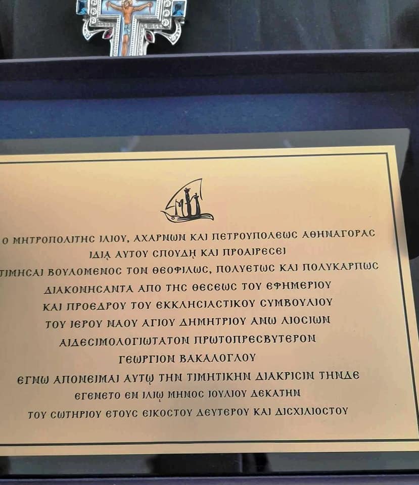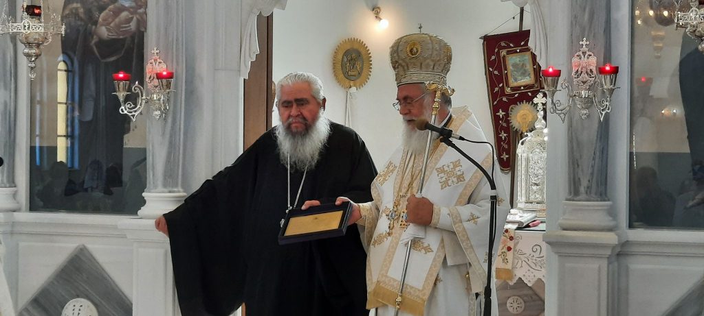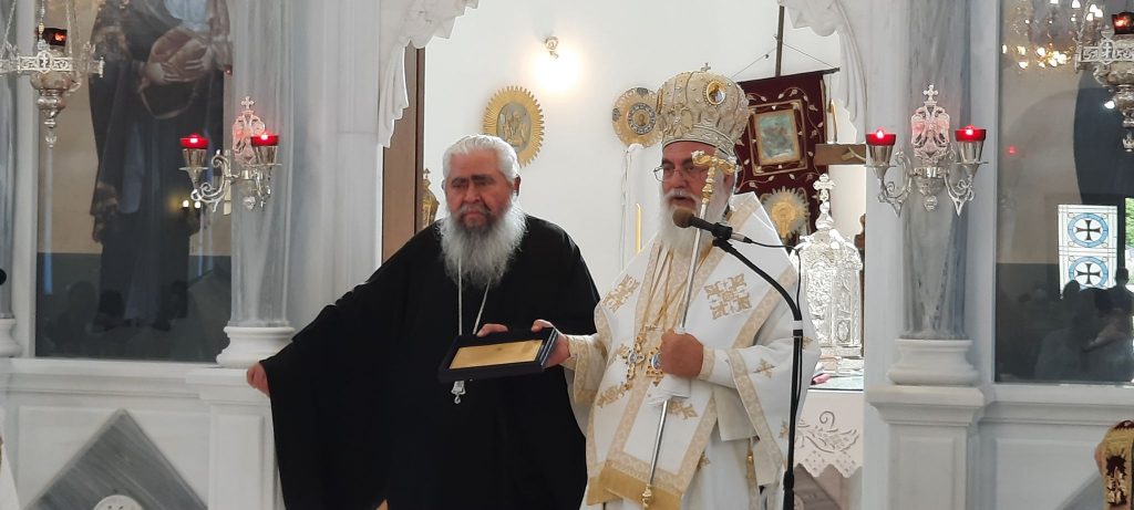 Λίγο πριν το τέλος της λειτουργίας, ο π. Γεώργιος μοίρασε το αντίδωρο στους πιστούς και δέχθηκε πολλούς ασπασμούς ως ένδειξη αγάπης και σεβασμού προς το πρόσωπό του και το έργο που προσέφερε όλα αυτά τα χρόνια στον τόπο. Νωρίτερα, παρέλαβε από τον σεβασμιότατο κ. Αθηναγόρα τιμητική πλακέτα, προς ένδειξη αναγνώρισης της προσφοράς του. Φυσικά, μπορεί υπηρεσιακά να μην είναι πλέον εκεί, ωστόσο ο παπά Γιώργης είναι σίγουρο ότι θα βρίσκεται κοντά στην εκκλησία και δίπλα στο ποίμνιό του, που τόσο τον έχει αγαπήσει όλον αυτό τον καιρό.