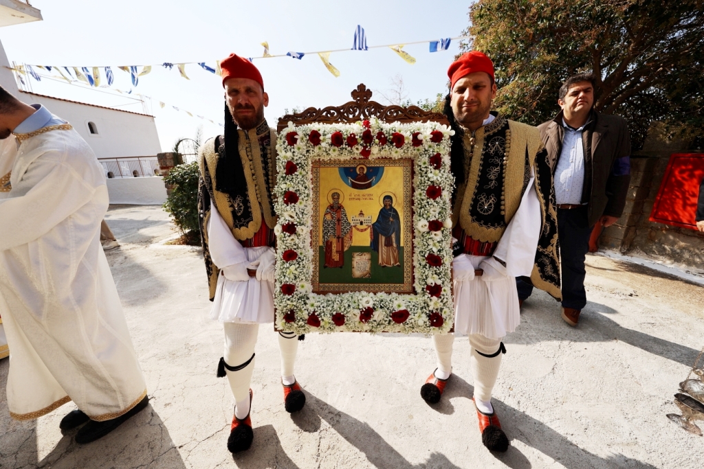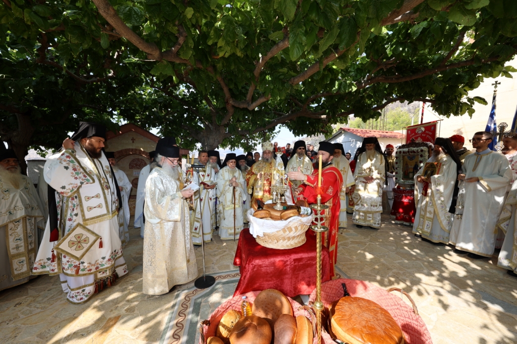 Ἐπακολούθησε ἡ καθιερωμένη λιτάνευσις τῆς ἱερᾶς Εἰκόνος καὶ τῶν χαριτοβρύτων Λειψάνων τῶν ἑορταζομένων Ἁγίων στοὺς ἤχους ψαλμωδιῶν καὶ ἡ εὐλόγησις τῶν Ἄρτων στὸν καταλλήλως κεκοσμημένο αὔλειο χῶρο, πρὸ τοῦ Ναοῦ.