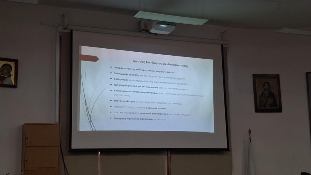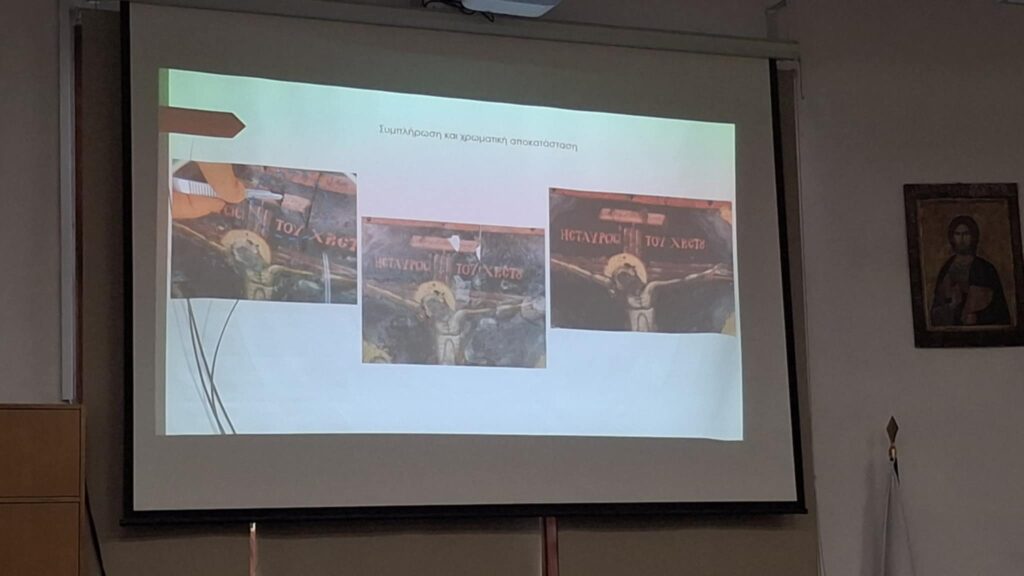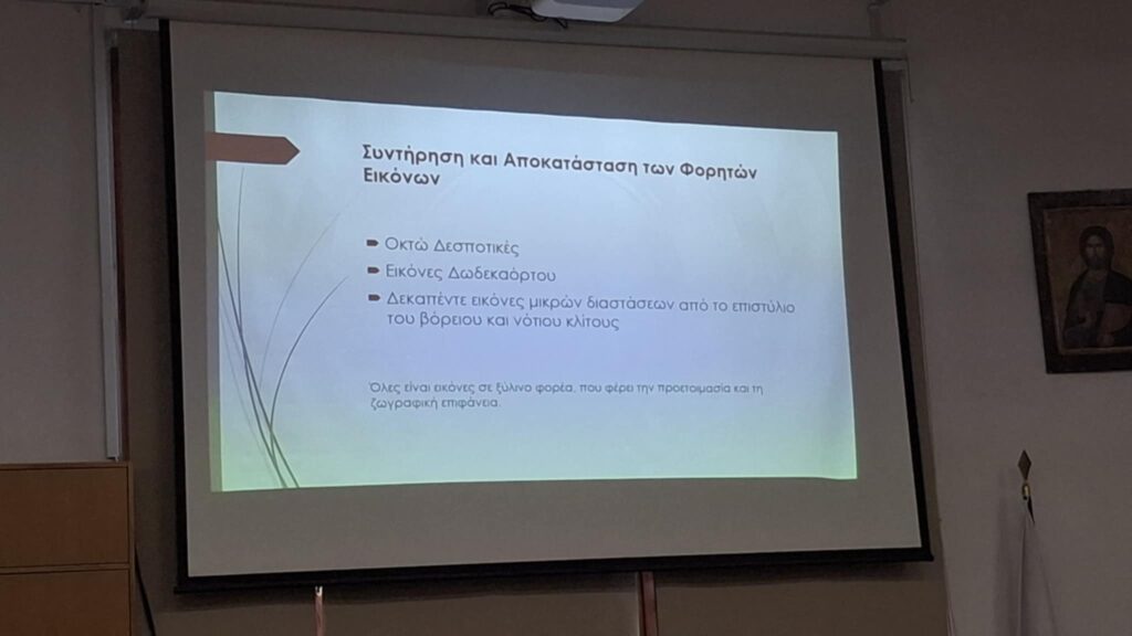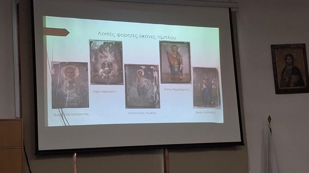 Πέραν των εργασιών συντήρησης και αποκατάστασης του Ιερού Ναού, παρουσιάστηκε και η διαδικασία αποκατάστασης των φορητών εικόνων για την οποία εφαρμόστηκαν ειδική τεχνική ανακατασκευής, που καθίσταται απαραίτητη λόγω της φθοράς που έχουν υποστεί με το πέρας του χρόνουα