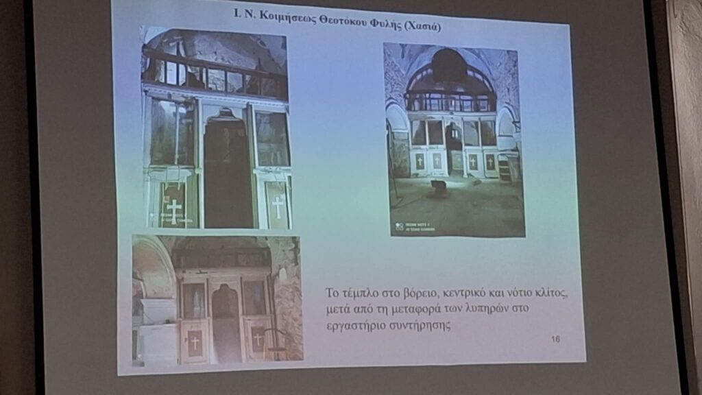 Με μια συγκινητική εκδήλωση έλαβαν χώρα τα θυρανοίξια του ανακατασκευασμένου Παλαιού ενοριακού Ιερού Ναού Κοιμήσεως Θεοτόκου Φυλής, το απόγευμα του Σαββάτου 12/7 στη Δημαρχείο “Νικόλαος Λιάκος” της Χασιάς.