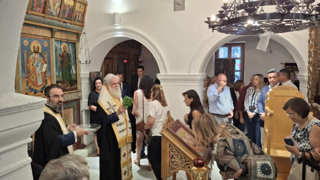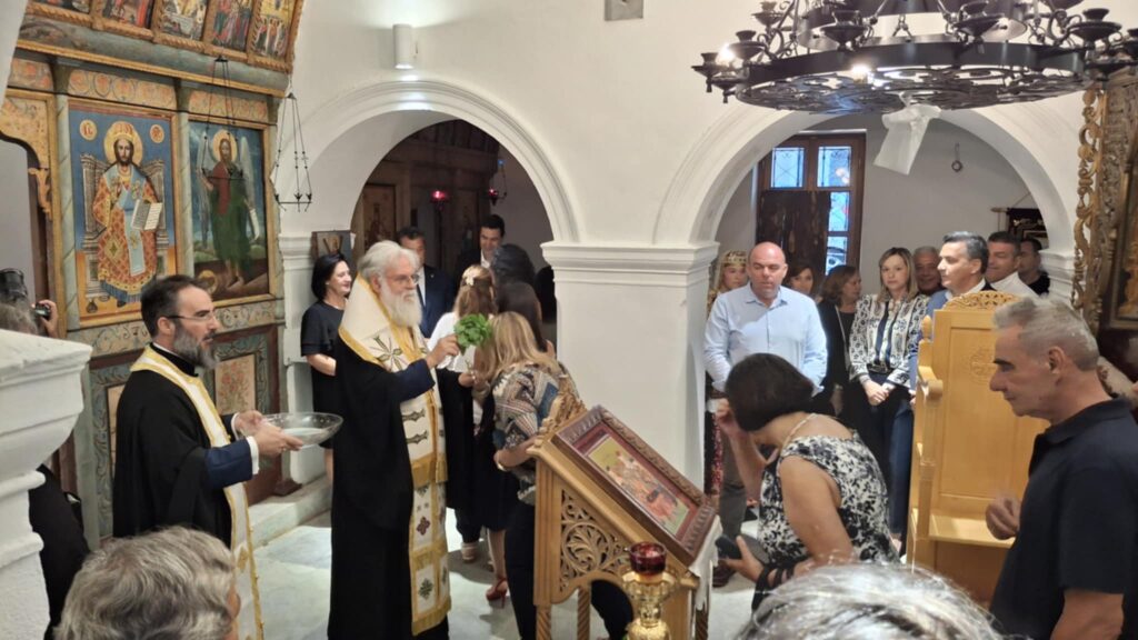 Στη συνέχεια, η διαδικασία μεταφέρθηκε εντός του ναού όπου ο Σεβασμιώτατος Μητροπολίτης Ιλίου, Αχαρνών & Πετρουπόλεως, κ.κ. Αθηναγόρας τέλεσε τα θυρανοίξια σε κλίμα συγκίνησης. Αξίζει να σημειωθεί ότι προηγουμένως ο Δήμαρχος Χρήστος Παππούς είχε χαρακτηρίσει το έργο και την ολοκλήρωση του ως «προσωπικό στοίχημα», υπογραμμίζοντας τις δυσκολίες που είχαν ως αποτέλεσμα την καθυστέρησή του. Το «παρών» στην εκδήλωση έδωσαν εκπρόσωποι της Περιφέρειας αλλά και της τοπικής αυτοδιοίκησης, όπως ο Αντιπεριφερειάρχης Δυτικής Αττικής Κλεάνθης Βαρελάς, ο Αντιπεριφερειάρχης Χωρικού Σχεδιασμού, Πολεοδομικών Θεμάτων & Εφαρμογών Περιφέρειας Αττικής Λευτέρης Κοσμόπουλος, οι αντιδήμαρχοι Ελένη Λιάκου, Γιώργος Αβράμης, Γιώργος Μαυροειδής, οι Σταύρος Κατσίλας, Γιώργος Μαρπίνης κ.ά..