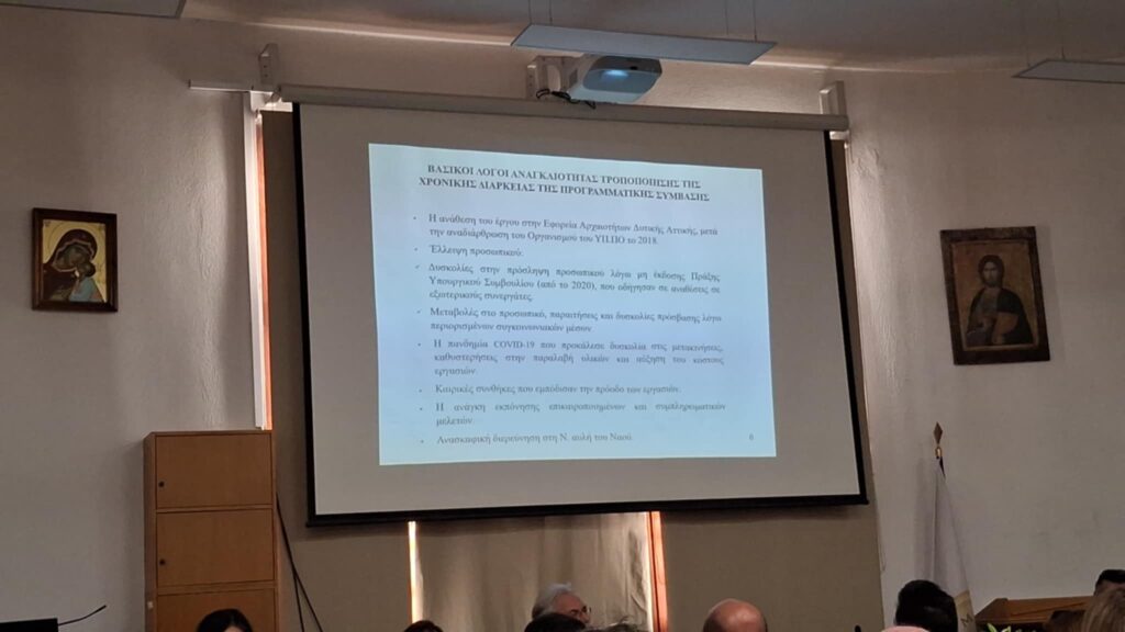 Αναλύθηκαν διεξοδικά οι παρεμβάσεις και οι βελτιώσεις που έγιναν προκειμένου ο ανακαινισμένος ναός να αποκτήσει την τρέχουσα μορφή του, διατηρώντας παράλληλα τα βασικά στοιχεία της ιστορικής του ταυτότητας, ενώ παράλληλα εξηγήθηκαν οι βασικοί λόγοι αναγκαιότητας τροποποίησης της χρονικής διάρκειας της προγραμματικής σύμβασης που προέβλεπε την ολοκλήρωση του έργου σε προγενέστερο χρόνο.