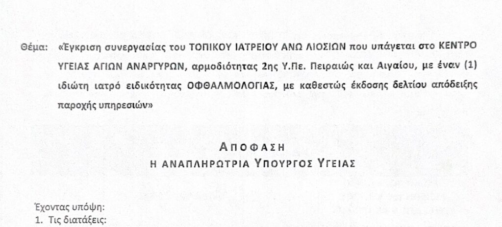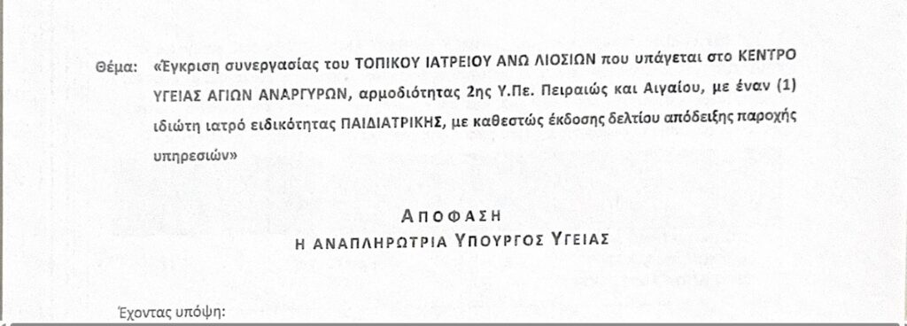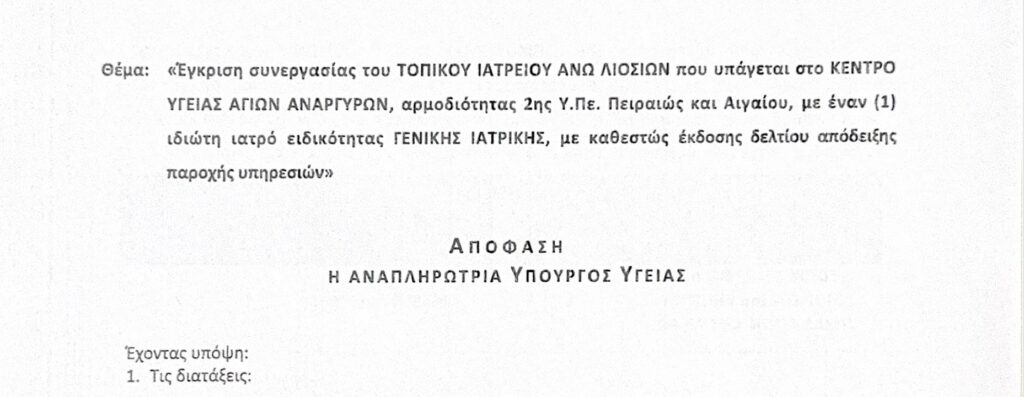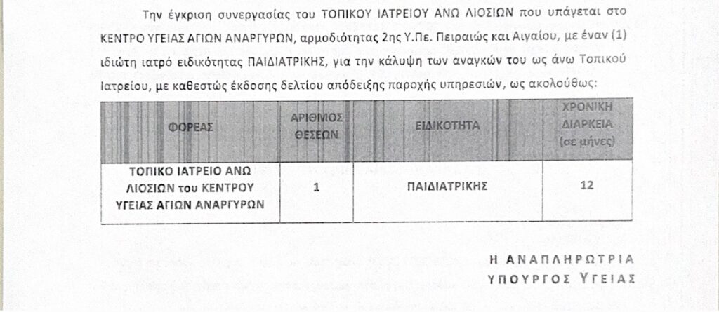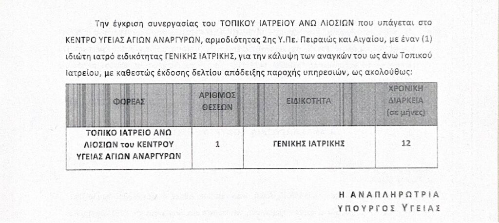 Δρομολογήθηκε η πρόσληψη τριών ιατρών στο τοπικό Ιατρείο Άνω Λιοσίων