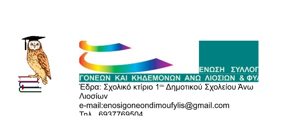 Ως Ένωση Συλλόγων Γονέων & Κηδεμόνων Άνω Λιοσίων & Φυλής θεσμικό όργανο του