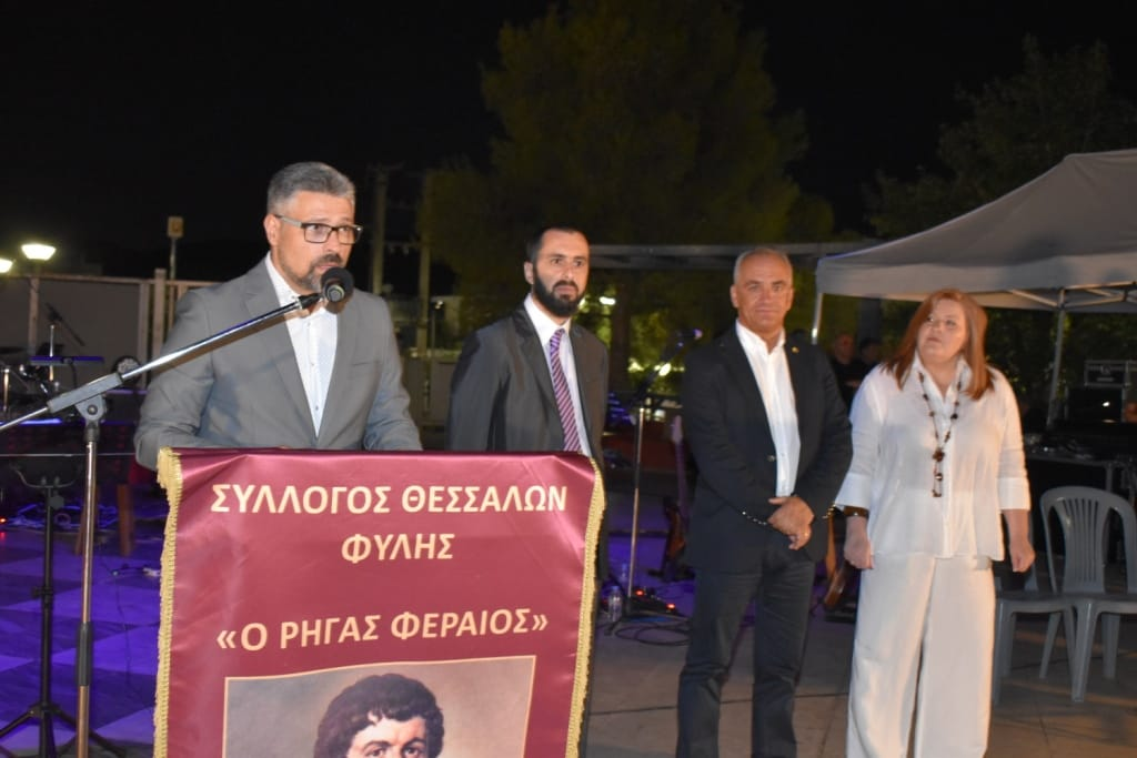 Ο Δήμαρχος Φυλής Χρήστος Παππούς κατά τα λοιπά στο χαιρετισμό του καλωσόρισε στην εκδήλωση τον Πρόεδρο της ΚΕΔΕ και Δήμαρχο Τρικάλων Δημήτρη Παπαστεργίου, προανήγγειλε εκτός από το σπίτι των Θεσσαλών και την κατασκευή του Σπιτιού των Μακεδόνων Θρακών γιατί όπως υπογράμμισε ο πολιτισμός για το Δήμο Φυλής είναι τα πάντα, όπως είπε.