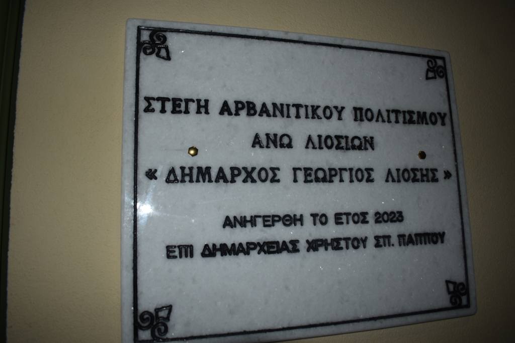 Με κάθε επισημότητα πραγματοποιήθηκαν το απόγευμα της Παρασκευής, 12 Σεπτεμβρίου 2025, τα εγκαίνια της Στέγης Αρβανίτικου Πολιτισμού Άνω Λιοσίων, στον Λιοσιώτικο “Πύργο”, ο οποίος φιλοξενεί πλέον τη Λαογραφική Συλλογή καθώς και τα γραφεία του Συλλόγου Αρβανίτικου Πολιτισμού Η ΓΡΙΖΑ.