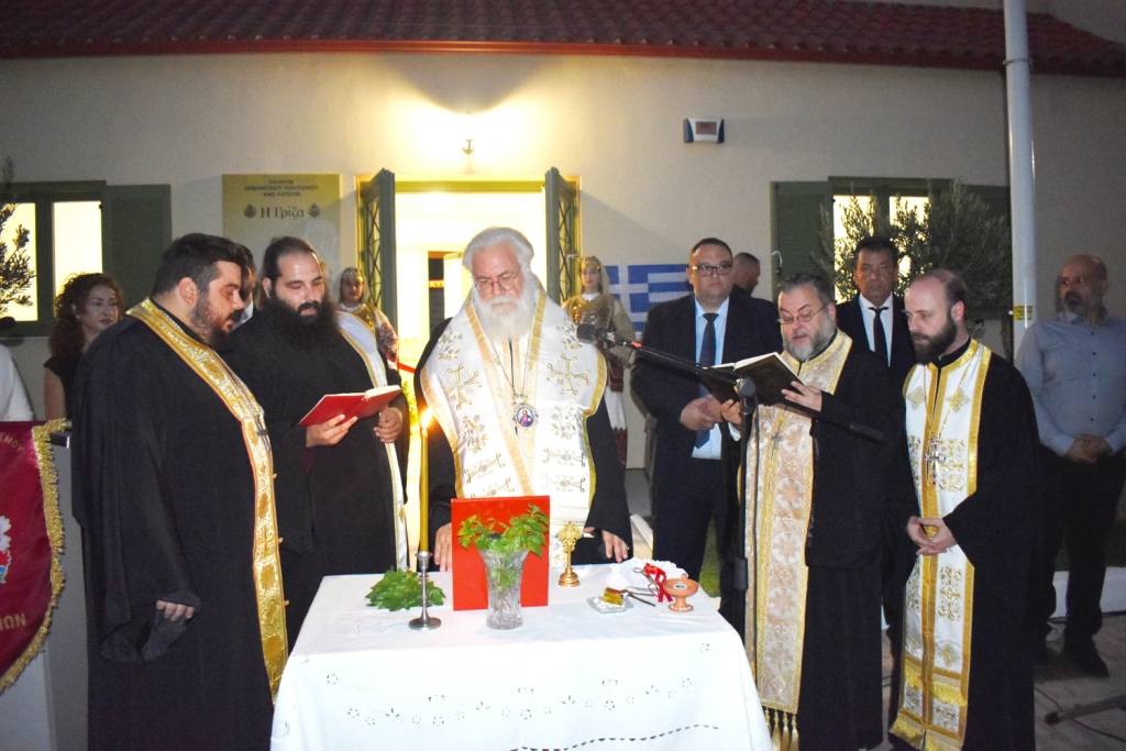 Ως προς το θρησκευτικό μέρος, η εκδήλωση ξεκίνησε με την τελετή των εγκαινίων, στην οποία πρωτοστάτησε ο Μητροπολίτης κ.κ. Αθηναγόρας, επικεφαλής κλιμακίου ιερωμένων από Ενορίες της πόλης. Ως προς τις τρεις ιστορικές στιγμές της πόλης, εκφράστηκαν με ισάριθμες μαρμάρινες πλάκες που τοποθετήθηκαν στο κτίριο με σκοπό να τιμηθούν δύο πρόσωπα και μια οικογένεια με σημαντική προσφορά: Πρόκειται για τον πρώτο εκλεγμένο Δήμαρχο (1975-1978) της Μεταπολίτευσης Γεώργιο Δημητρίου Λιόση, τον ιδρυτή της ΓΡΙΖΑΣ και οραματιστή της ενότητας στη δράση των πολιτιστικών φορέων του τόπου Αλέξανδρο Αναστ. Σύρμα και την οικογένεια Καρατζά η οποία δώρισε στο Δήμο το οικόπεδο, το οποίο φιλοξένησε στο παρελθόν, αρχικά το Δημοτικό Σχολείο κι εν συνεχεία, το Νηπιαγωγείο των Άνω Λιοσίων.
