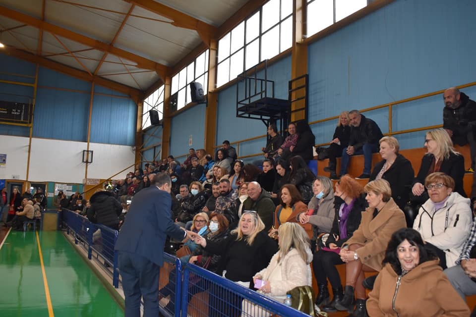 Εγκάρδιες ευχές με τους εργαζόμενους του Δήμου Φυλής αντάλλαξε ο Δήμαρχος Χρήστος Παππούς στην εκδήλωση του Σωματείου για την κοπή της Βασιλόπιτας που πραγματοποιήθηκε το μεσημέρι της Παρασκευής 16 Φεβρουαρίου 2024 στο Κλειστό Γυμναστήριο του Αγίου Νικολάου.