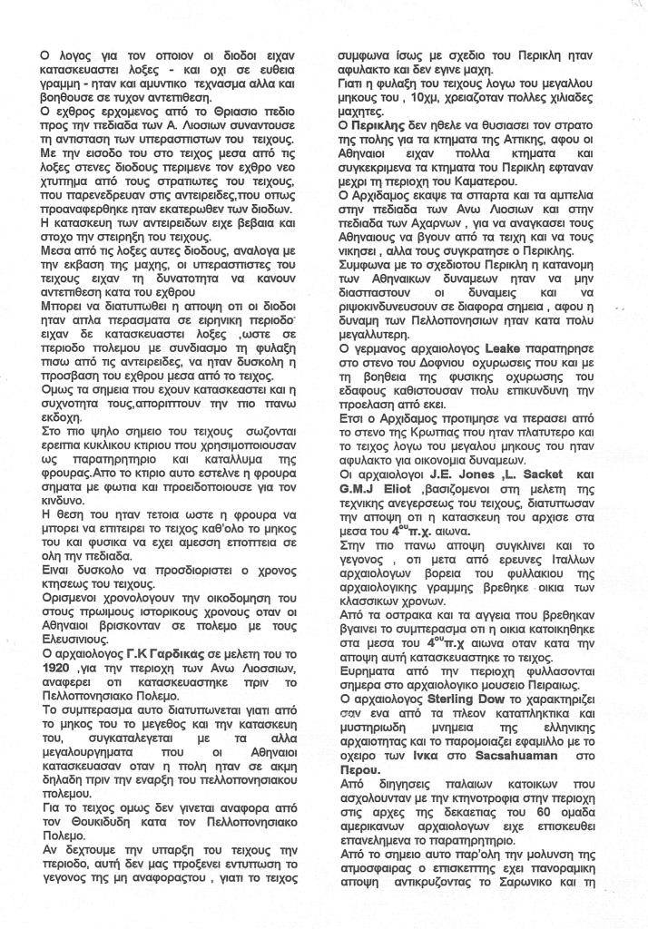 Αν δεχτούμε την ύπαρξη του τείχους την περίοδο, αυτή δεν μας προξενεί εντύπωση το γεγονός της μη αναφοράς του , γιατί το τείχος σύμφωνα ίσως με σχέδιο του Περικλή ήταν αφύλακτο και δεν έγινε μάχη.