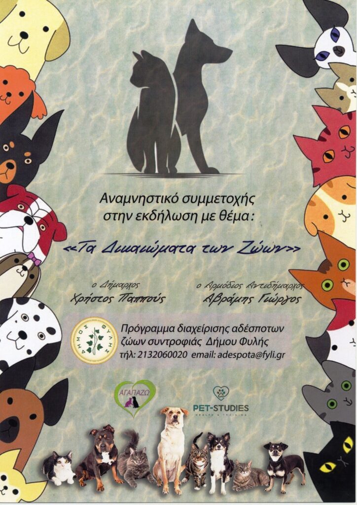 Αξίζει να σημειωθεί ότι με επικεφαλής τον αρμόδιο Αντιδήμαρχο του Προγράμματος Διαχείρισης αδέσποτων ζώων συντροφιάς Γιώργο Αβράμη και με αφορμή την 4η Οκτωβρίου Παγκόσμια Ημέρα των ζώων έχει ξεκινήσει μια μεγάλη καμπάνια ενημέρωσης κι ευαισθητοποίησης των μαθητών του Δήμου Φυλής, παρέχοντας τους πολύτιμες γνώσεις μέσα από δημιουργικό παιχνίδι και διάλογο.