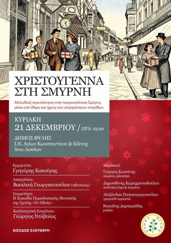 ΠΟΛΙΤΙΣΜΟΣ “Χριστούγεννα στη Σμύρνη” την Κυριακή 21/12 στον Ιερό Ναό Αγίων Κων/νου και Ελένης Ημερομηνία: 19 Δεκεμβρίου 2025 Κοινοποιήση: FacebookPinterestWhatsApp Προηγούμενο άρθροΕορταστικές εκδηλώσεις στις κεντρικές Πλατείες Άνω Λιοσίων-Ζεφυρίου και Χασιάς παραμονή Χριστουγέννων και ΠρωτοχρονιάςΕπόμενο άρθροΝέο σύγχρονο Γυμναστήριο στη Δημοτική Κοινότητα Φυλής – Οι εγγραφές ξεκίνησαν O ελληνικός Ερυθρός Σταυρός διοργανώνει Διαδικτυακό Σεμινάριο με θέμα: «Πρόληψη και διαχείριση της φυματίωσης: Ο Ρόλος των Φροντιστών» (21/4) 20 Απριλίου 2026 Τραγωδία στη λεωφόρο ΝΑΤΟ – Οδηγός μηχανής έχασε τη ζωή του σε δυστύχημα ΚΑΘΗΜΕΡΙΝΟΤΗΤΑ Στα Άνω Λιόσια χτυπά η καρδιά του kick boxing ΔΗΜΟΣ ΦΥΛΗΣ Τέσσερις τελευταίες «Καραμέλες Ούζου» στο Από Μηχανής Θέατρο ΠΟΛΙΤΙΣΜΟΣ Ολοκλήρωση σύνταξης Επιχειρησιακού Σχεδίου για την εξασφάλιση κοινοχρήστων και κοινωφελών χώρων στον Δήμο Φυλής ΑΥΤΟΔΙΟΙΚΗΣΗ Νεφελώδης καιρός με μικρή πιθανότητα για ασθενείς τοπικές βροχές αύριο Κυριακή του Πάσχα – Πρόγνωση καιρού Άνω Λιοσίων, Φυλής & ν.Αττικής ΚΑΙΡΟΣ παρομοια αρθρα ΠΟΛΙΤΙΣΜΟΣ Τέσσερις τελευταίες «Καραμέλες Ούζου» στο Από Μηχανής Θέατρο Η ανατρεπτική κωμωδία μυστηρίου «Καραμέλες Ούζου», σε κείμενο του βραβευμένου Γιάννη Γαλανόπουλου και σκηνοθεσία Σταύρου Νικολαΐδη, μετά από μια επιτυχημένη καλοκαιρινή περιοδεία σε όλη την... ΠΟΛΙΤΙΣΜΟΣ Καλό Πάσχα, χρόνια πολλά! – Cityface.gr ΠΟΛΙΤΙΣΜΟΣ Δήμος Φυλής – Απολογισμός δράσεων για τα αδέσποτα ζώα συντροφιάς για το 2025 Με αφορμή την Παγκόσμια Ημέρα Αδέσποτων Ζώων (4 Απριλίου 2026), ο Δήμος Φυλής παρουσιάζει τον απολογισμό του Δημοτικού... ΠΟΛΙΤΙΣΜΟΣ Με κατάνυξη και υπό βροχή η λιτάνευση της Εικόνας της Μονής Κλειστών στα Άνω Λιόσια Με ιδιαίτερη ευλάβεια και παρά τις αντίξοες καιρικές συνθήκες, υποδέχθηκαν οι πιστοί την Εικόνα της Μονής Κλειστών στα...