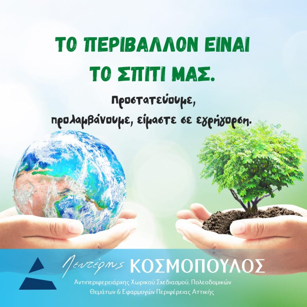 Με αφορμή την Παγκόσμια Ημέρα Περιβάλλοντος (05.06.25), ο Αντιπεριφερειάρχης Χωρικού Σχεδιασμού, Πολεοδομικών Θεμάτων και Εφαρμογών Περιφέρειας Αττικής Λευτέρης Κοσμόπουλος απηύθυνε το παρακάτω μήνυμα: