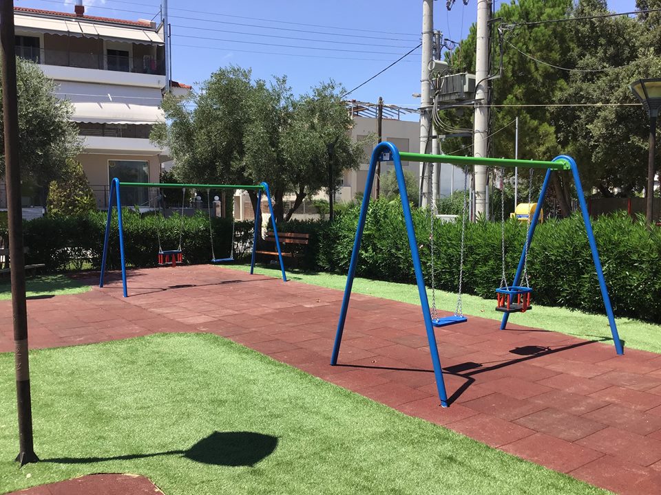 Χαρούμενα χρώματα, ελκυστικά παιγνίδια, ωραία ξύλινη περίφραξη και τεχνητό γκαζόν είναι τα συστατικά που συνθέτουν αυτόν τον ασφαλή και πανέμορφο χώρο ψυχαγωγίας των παιδιών και χαλάρωσης των μεγαλύτερων. Σύνθετο όργανο παιδικής χαράς με τσουλήθρες, τραμπάλα, νηπιακές και παιδικές κούνιες περιμένουν τους μικρούς δημότες για να τους διασκεδάσουν
