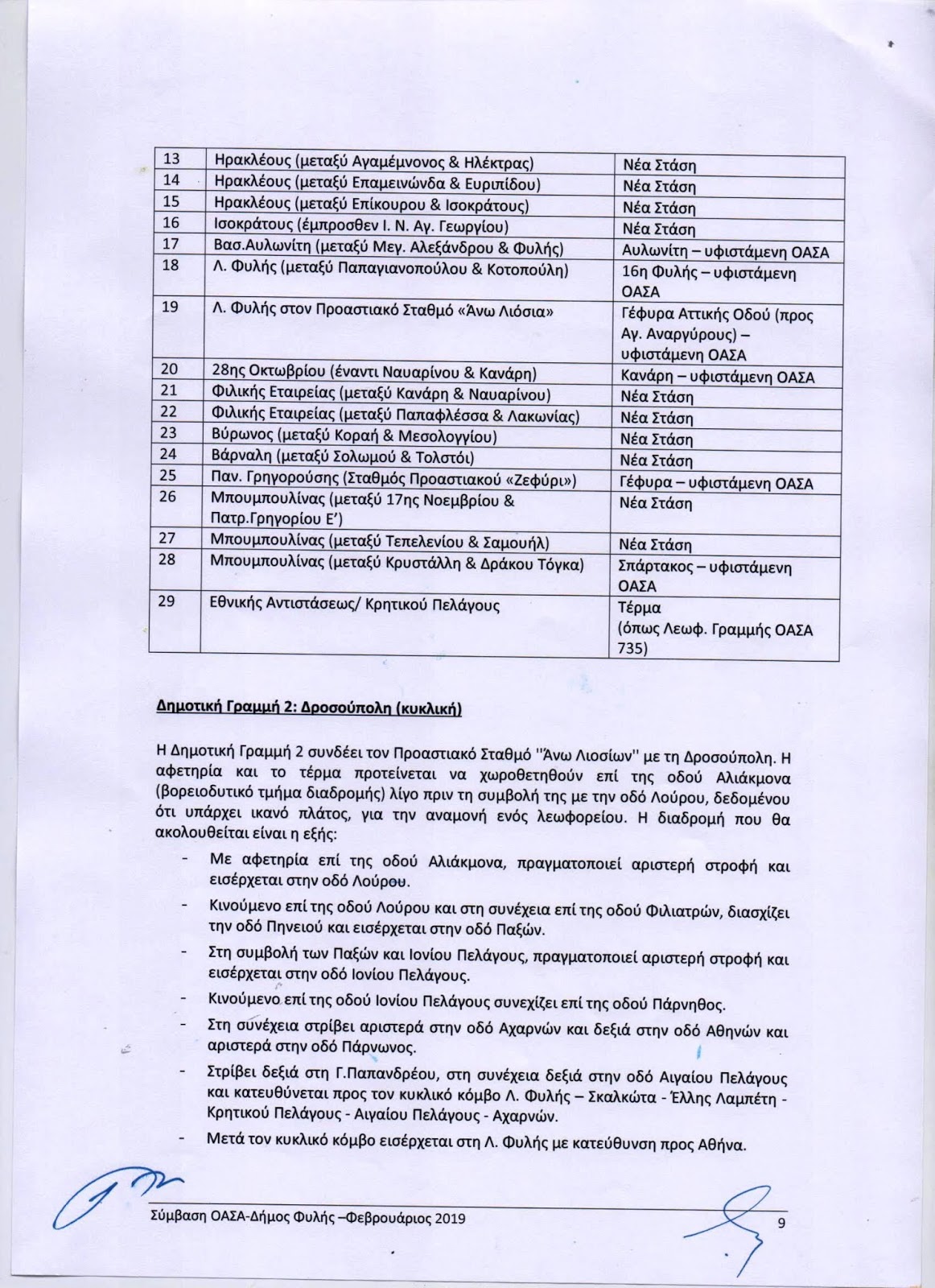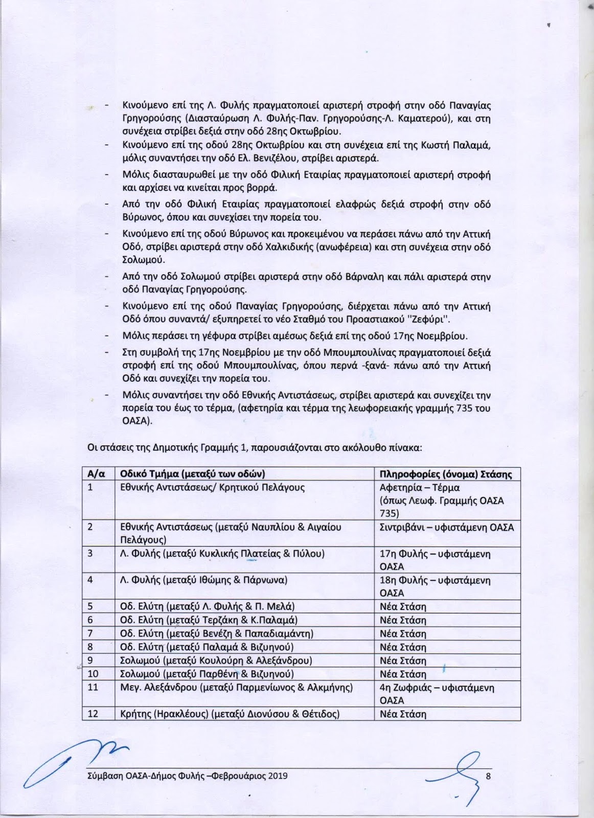 Υπογράφτηκε, την Πέμπτη 7 Φεβρουαρίου 2019, από το Δήμαρχο Φυλής Χρήστο Παππού και το Διευθύνοντα Σύμβουλο Γιάννη Σκουμπούρη, η σύμβαση του Δήμου Φυλής με τον ΟΑΣΑ για τη λειτουργία Δημοτικής Συγκοινωνίας στο Δήμο Φυλής.