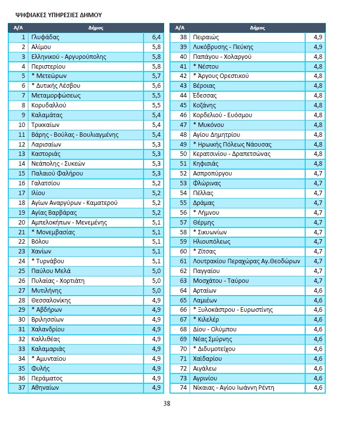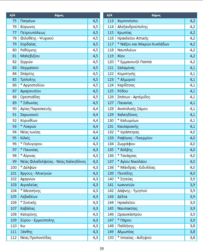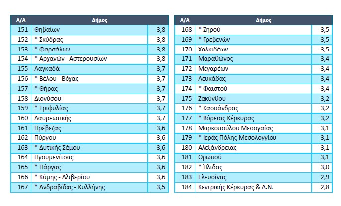 🔝 Οι 5 πρώτοι δήμοι (παρά τις χαμηλές απόλυτες βαθμολογίες):