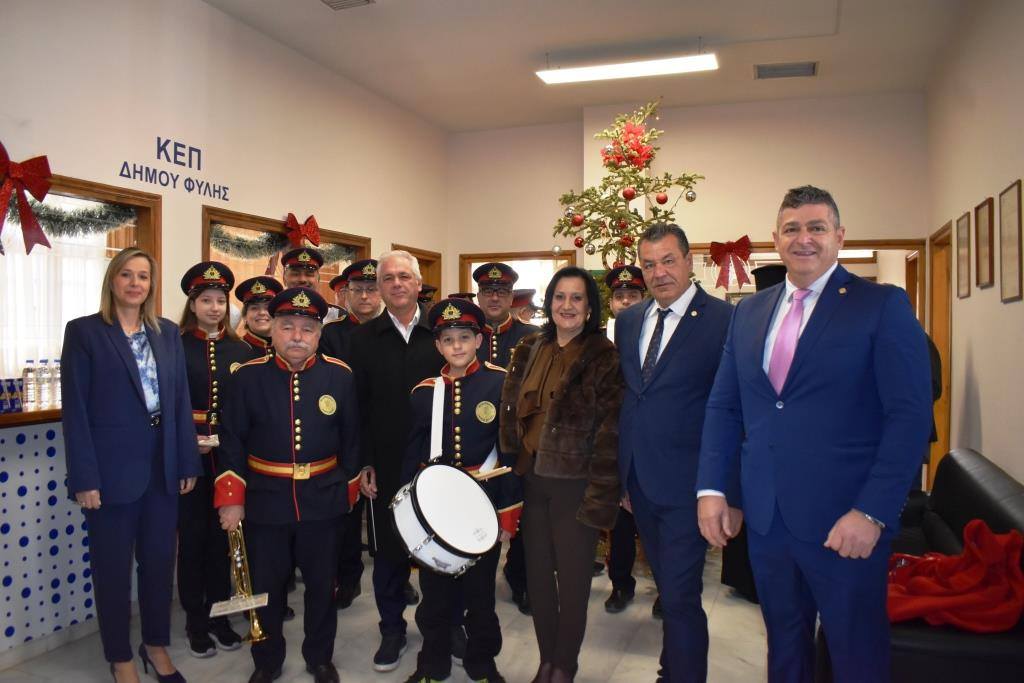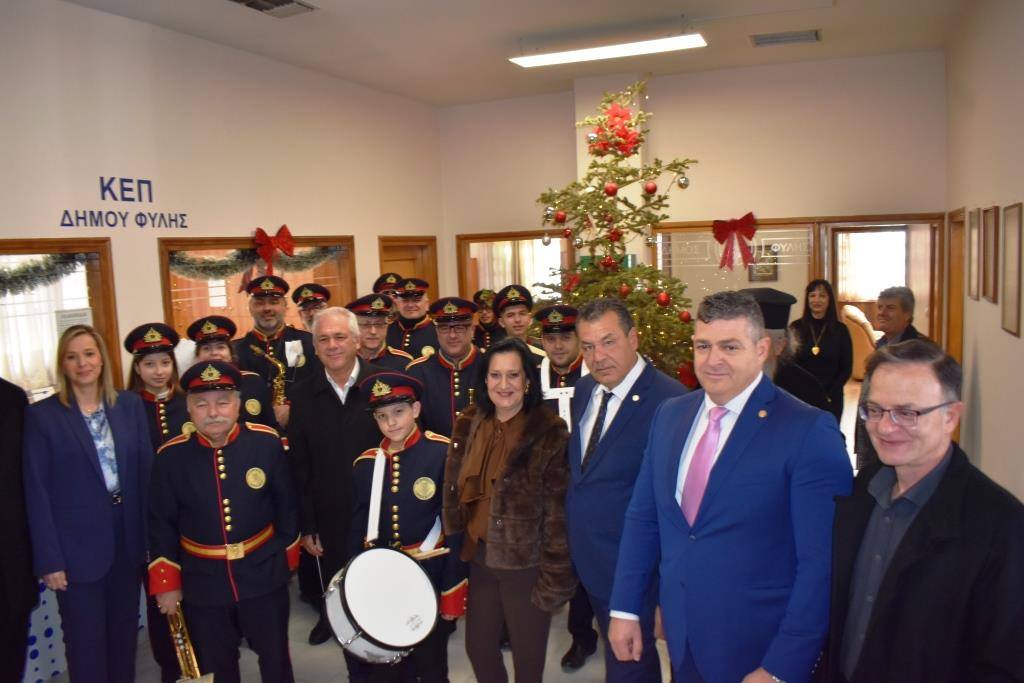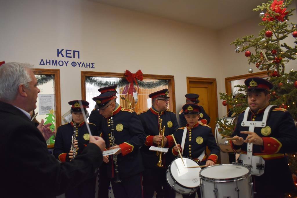 Στη δημιουργία της εορταστικής ατμόσφαιρας συνέβαλε ουσιαστικά η Φιλαρμονική του Δήμου Φυλής με Πρωτοχρονιάτικα κάλαντα και Ύμνους, υπό τη Διεύθυνση του Αρχιμουσικού Νικολάου Καλομοίρη.