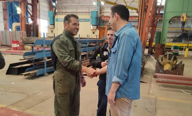 Στην επίσκεψη του, είχε την ευκαιρία να συνομιλήσει μαζί τους, σχετικά και με την πορεία επαναλειτουργίας των Ναυπηγείων, μετά και την ψήφιση του σχεδίου εξυγίανσης, ένα νομοσχέδιο στο οποίο ο ίδιος υπήρξε εισηγητής.