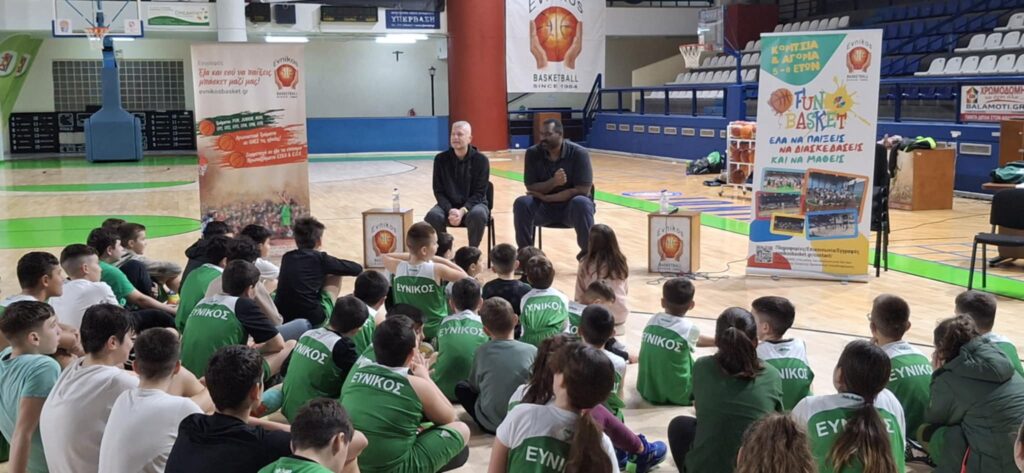 Οι νεαροί καλαθοσφαιριστές του «Εύνικου» δεν έχασαν την ευκαιρία να «βομβαρδίσουν» τους δύο πρώην άσους με διάφορες ερωτήσεις σχετικά με το μπάσκετ, αλλά και τα όσα περιβάλλουν τον αθλητισμό: από το πώς μπορούν να διαχειριστούν αντιπάλους, φιλάθλους αλλά και… γονείς, μέχρι και τις εκτός παρκέ υποχρεώσεις όπως το σχολείο, οι δύο ambassadors του προγράμματος είχαν έναν ενδιαφέρον και ουσιαστικό διάλογο με τους νεαρούς αθλητές, οι οποίοι αποκόμισαν σαφώς πολλά από τη διαδραστική κουβέντα με τους δύο σπουδαίους και πολύπειρους πρώην διεθνείς με τη γαλανόλευκη.